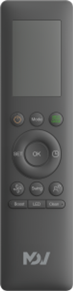 RG10A1(N2S)/BGEF – беспроводной ИК-пульт дистанционного управления. Активация подсветки дисплея нажатием любой кнопки. Предназначен для индивидуального управления кондиционерами MDV серии Loft.